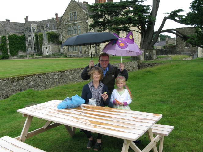 I’ve been very quiet recently, I know. It’s because I’ve been away, and then when I returned, was so backed up with orders and admin that I feel I have been struggling to surface. Oh, and we moved house as well. Anyway, after a month of freezing and shivering in the UK (10 degrees, raining. Raining sideways, no sensible clothes/shoes packed for me or the Critter) we are back to the opposite extreme, steamy hot Hong Kong. But just to give you an idea of my travels, heres a picture of my husband, mum and child, like True Brits, picnicking in the rain.
