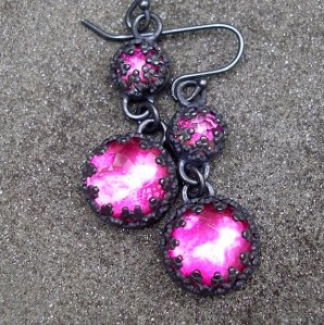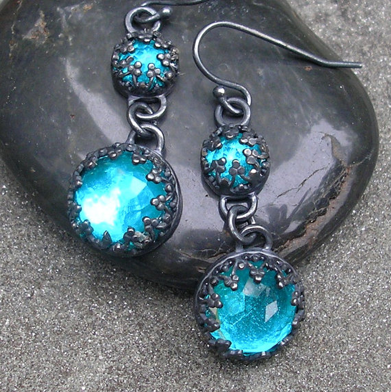 These earrings are just incredible; made by L. Sue Szabo using the old fashioned technique of foiling. She has placed coloured foils behind white topazes (supplied by me!) in a modern day revival of the old technique for colouring rhinestones back in the 1920s. She wanted to see what would happen if she used beautiful gems instead and I think they look fantastic. I for one know that the topaz is completely clean and in addition, she has sealed the coloured foil in resin to ensure that it does not fade. I really like the old-style elegance of the filligree settings and the way that they really make those colours pop. You can find these at www.etsy.com/shop/lsueszabo and see more of her award winning designs.