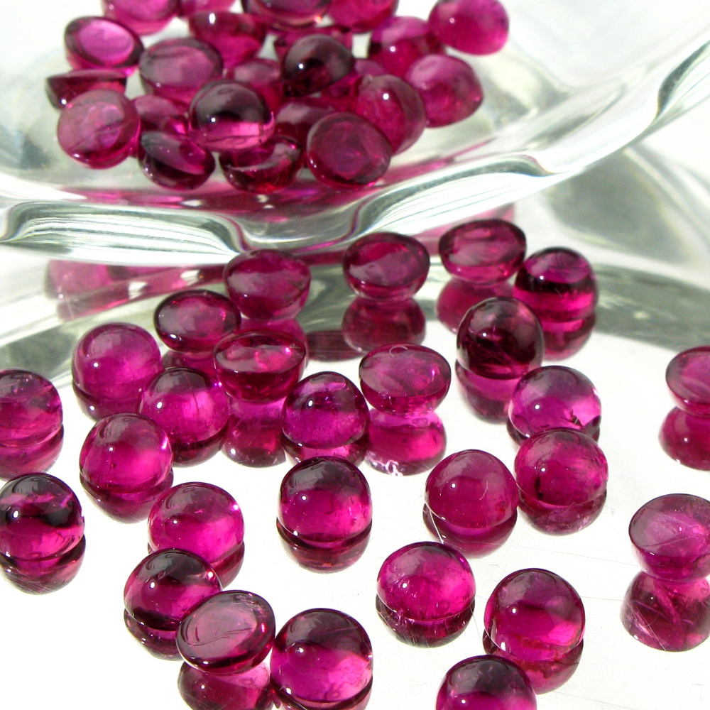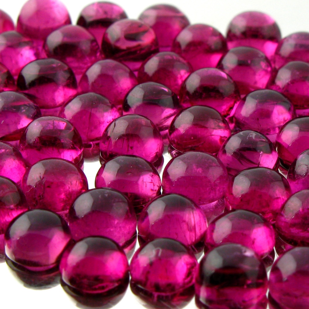 Finally back in stock! This is beautiful, intense pink rubellite, absolutely gorgeous fuschia coloured droplets. Lovely quality as well; beautifully clear although there are a few inclusions of course, this is tourmaline after all. I have these in a 4mm and a 5mm round, available now at http://www.joopygems.com