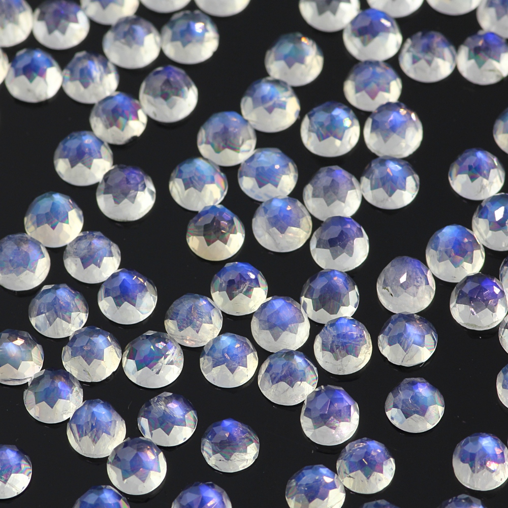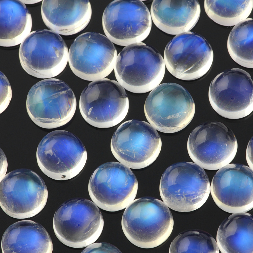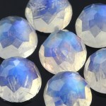 Rainbow moonstone is so popular; it seems no-one can resist the magic of the shimmering blue light that dances across the stone. And people always ask me for the same thing; as clean as possible, with a strong blue schiller, so I thought it was high time I started offering some higher grade material. So now, let me present to you; cleaner rainbow moonstone in a 4mm, 5mm, 6mm, 8mm and 10mm cabochon, both standard cabs and rose cut! This has the most spectacular blue schiller, good from all angles. It’s not 100% clean; that would be so expensive I don’t think I’d get many takers, and the smaller sizes are cleaner than the larger sizes, as you would expect, but the blue is so fantastic that sometimes it entirely obscures the clarity of the stone; that is, the blue is all you can see! I hope you like it. I do, very much!