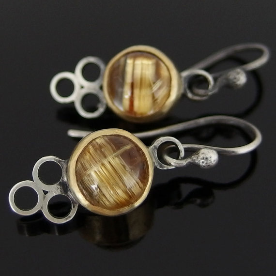 Nijiko Designs 18ct gold and rutilated quartz earrings
