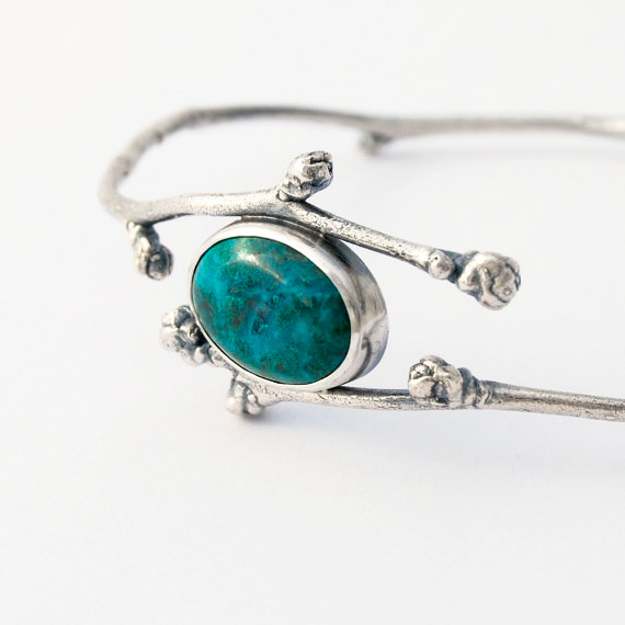Lucie Veilleux botanical bangle, sterling silver and chrysocolla-1