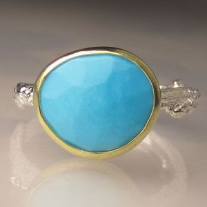 Janish Jewels Rose Cut Sleeping Beauty Turquoise Twig Ring 18k