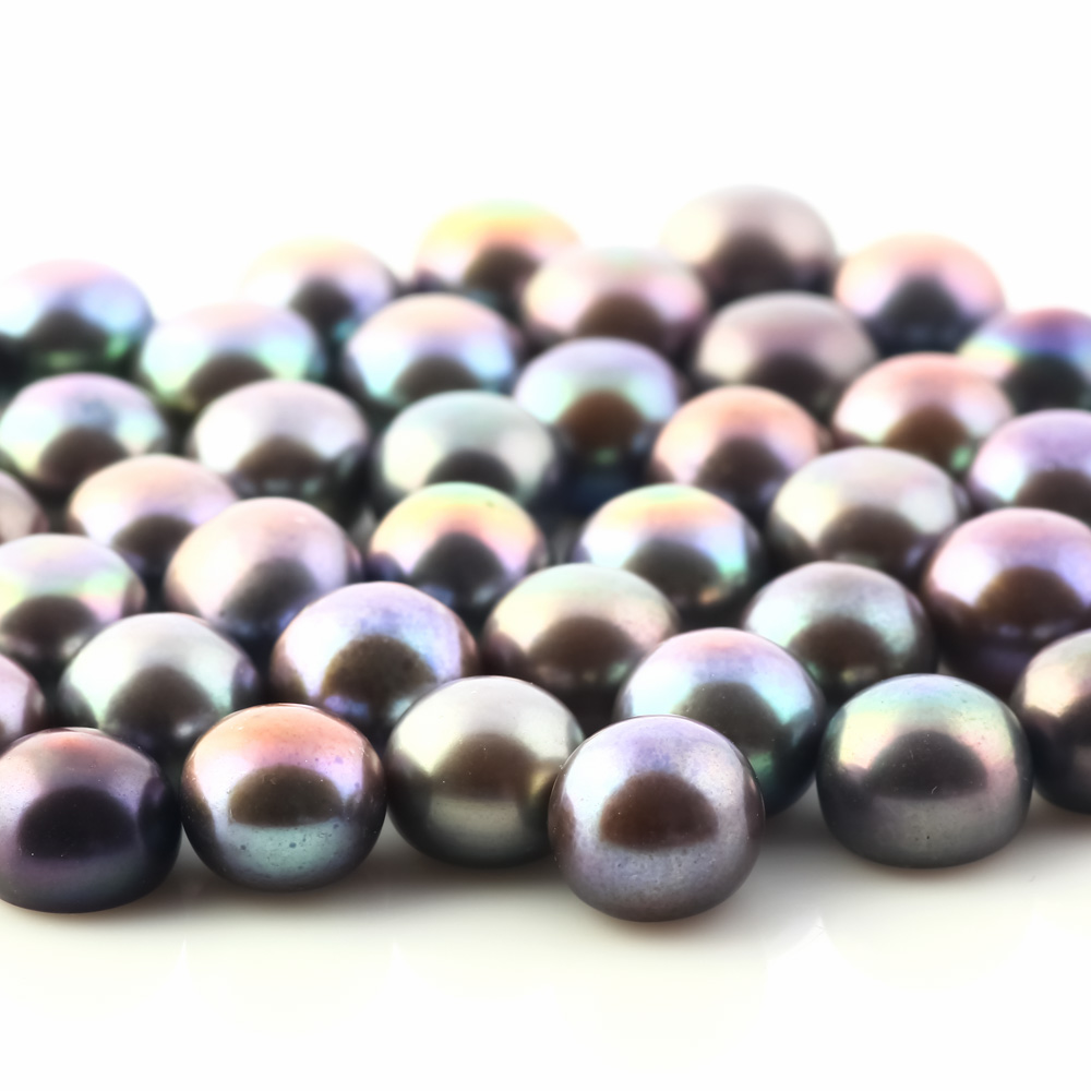 This is why I’m particularly excited about the 8mm half-drilled peacock pearls I have just listed, as they do fulfill both of these criteria. Not that I’m for a minute suggesting that you pass them off as real, just that if you are looking for a more authentic, less ‘oil-on-water’ appearance, these are a really good option; a lovely grey body-colour with subtle overtone. Check them out here.