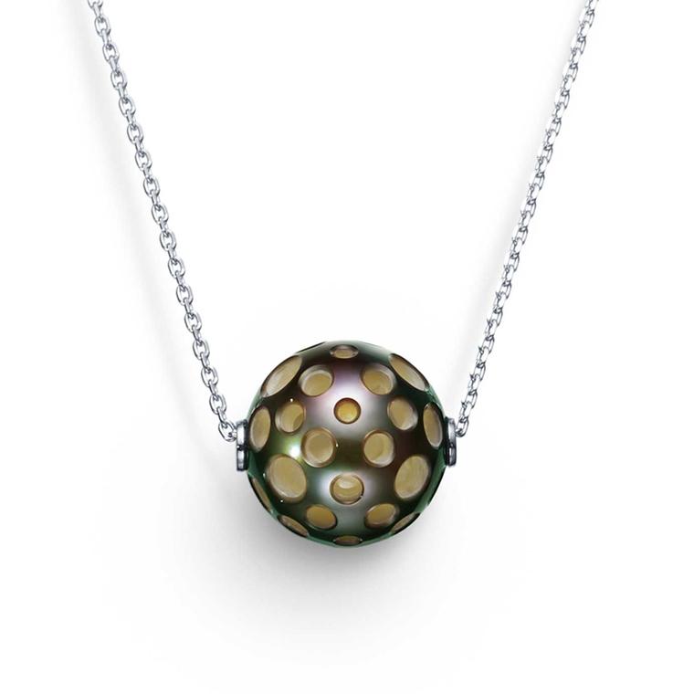 When I visited her website and the M/G Tasaki website I discovered more incredible designs. Pearls with segments removed or sliced and lined with gold, faceted pearls, or drilled with holes to expose the layer beneath.