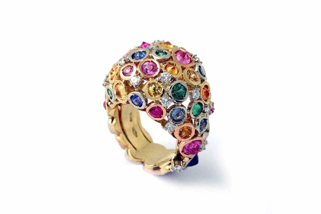 To me, it seems a much easier trend to wear in jewellery form, as most coloured stones are bright and saturated and that’s how we like them! Think of a juicy pink tourmaline, or a glowing yellow citrine; a vibrant green peridot or a velvety purple amethyst. Garnets like drops of blood and lapis the colour of a summer sky. And these can look amazing when put together, six or seven colours in the same piece.